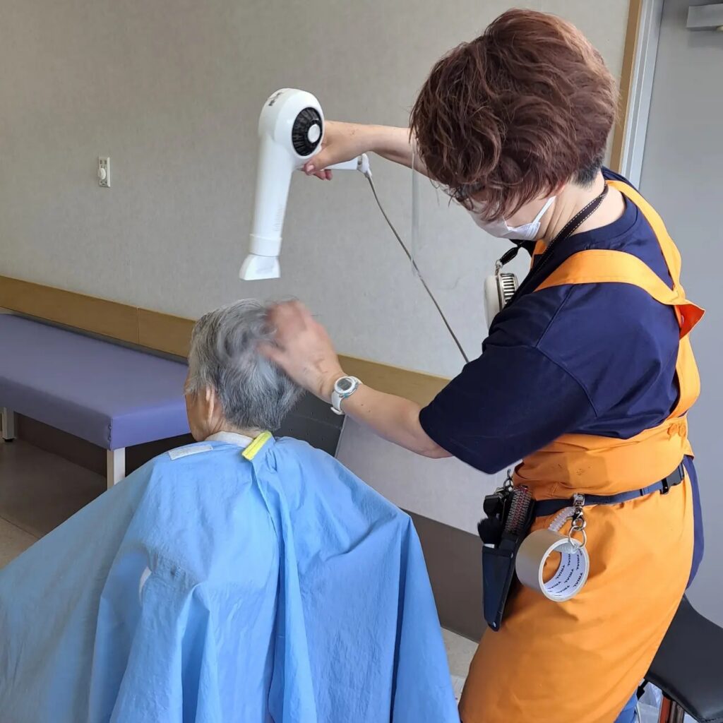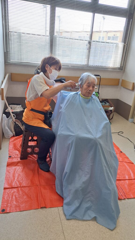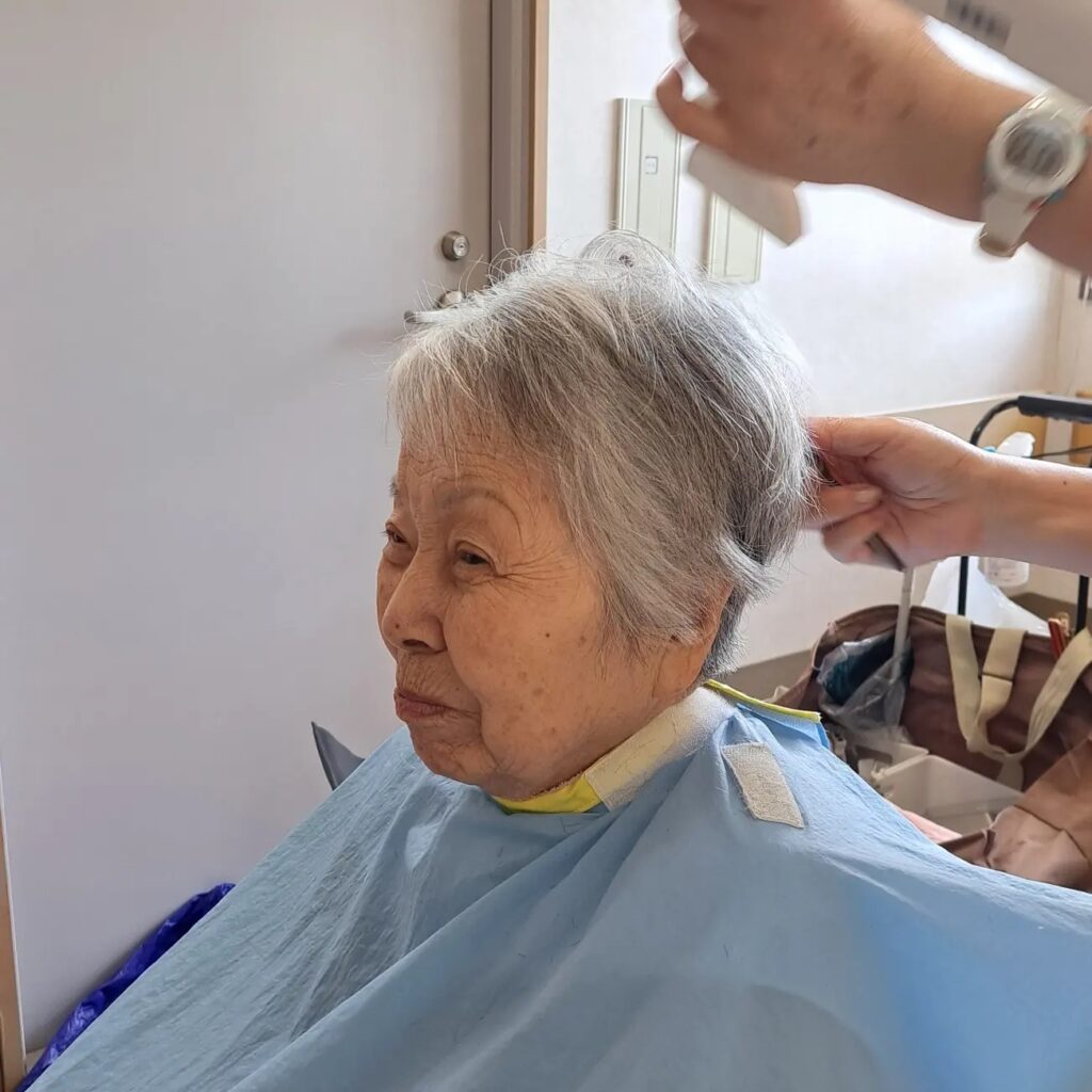 施設長便り 理美容の日 2025年8月29日 朝夕は少しですが秋を感じるようになって来ました。白峰荘では、美容師さんと理容師さんが交代で来てくれます。今日はビューティーモバイルの美容師さん。スッキリ、サッパリ!やはり女性にとっても男性にとっても美は大切な生き甲斐、自然と顔もほころびますね。綺麗になりました(^-^)