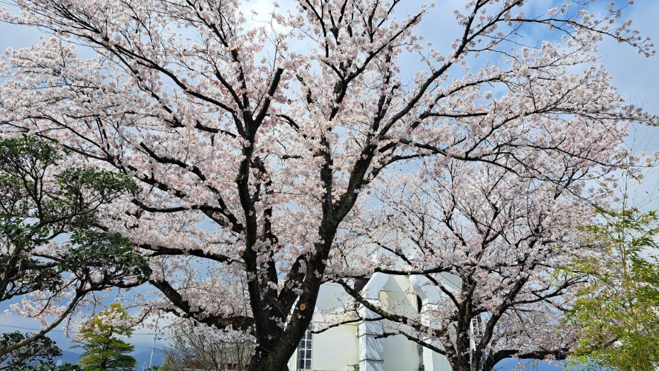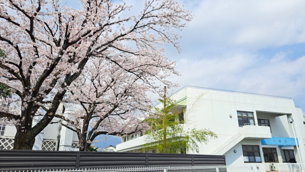 施設長便り 桜も満開 2026年3月30日 白峰荘の前(南側隣接)には旧白根町の美術館があります。今では収蔵庫として一般公開はされていないのですが古い桜の木が満開に、窓から眺める景色もとても奇麗です。 近くの名所、徳島堰の桜のトンネルも見応えあります。ここ2~3日が見ごろではないでしょうか。