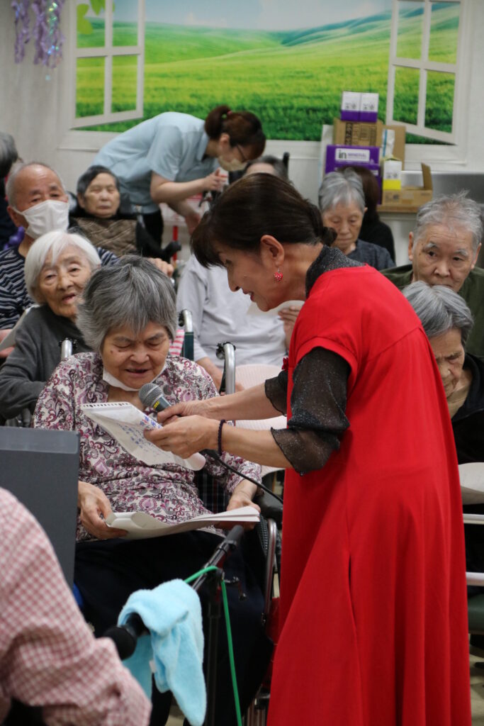 いつもは静かな人たちも懐かしい歌に、マイクを向けられて思わず口ずさんでいます。