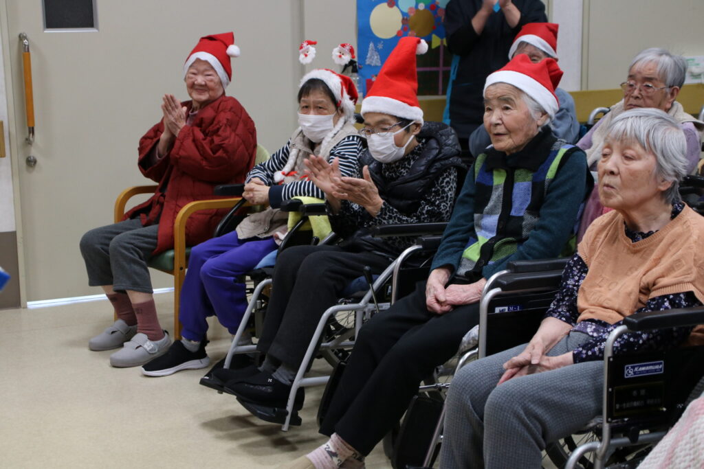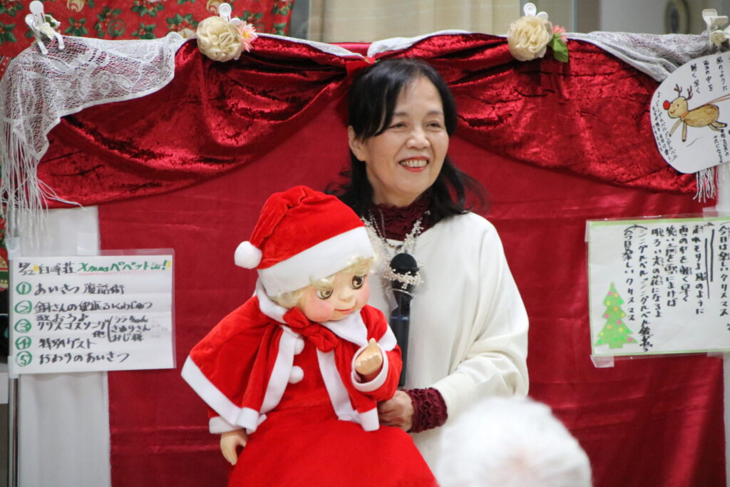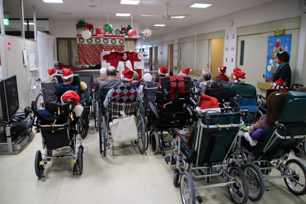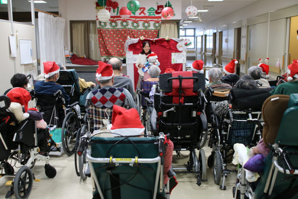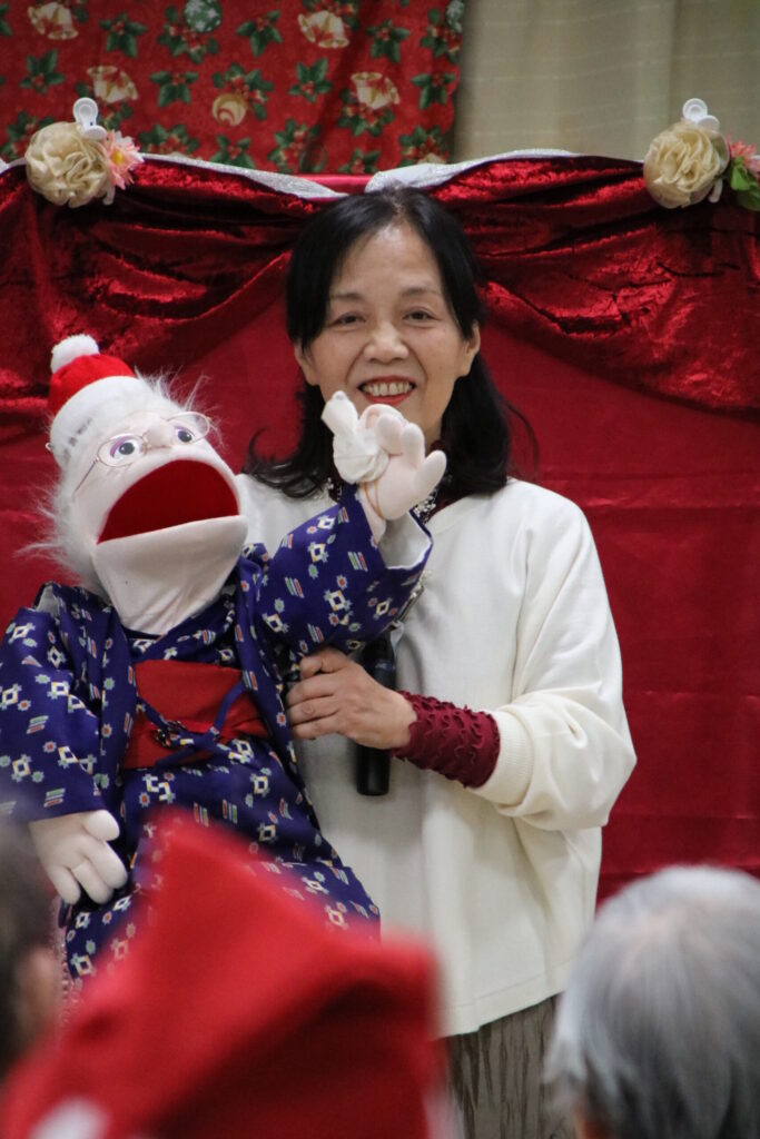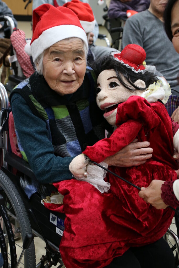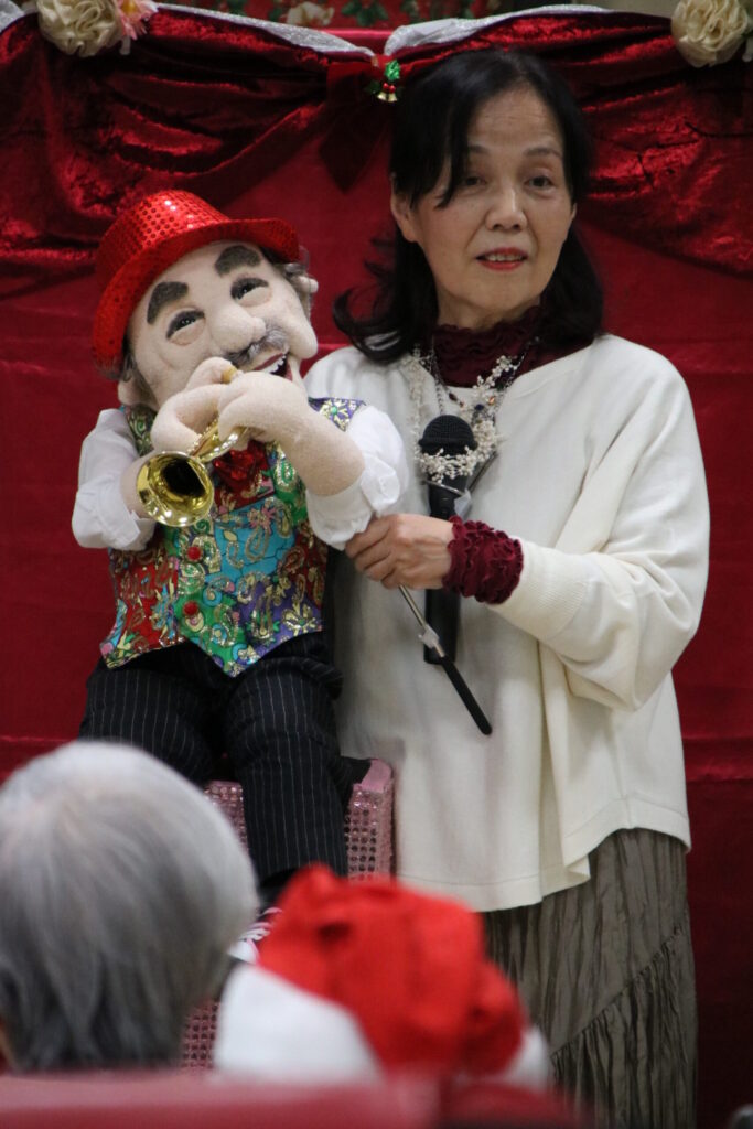 スタッフブログ 白峰荘クリスマス会 2025年12月22日 恒例の矢崎先生をお迎えしてパペットショーを開催しました。入所者の皆さんも手拍子に笑いに大いに盛り上がって楽しいひとときとなりました。 いつものメンバー、今回初めて登場するメンバーも芸達者の皆さんです。 入所者の皆さんもとても和らいだ表情です。